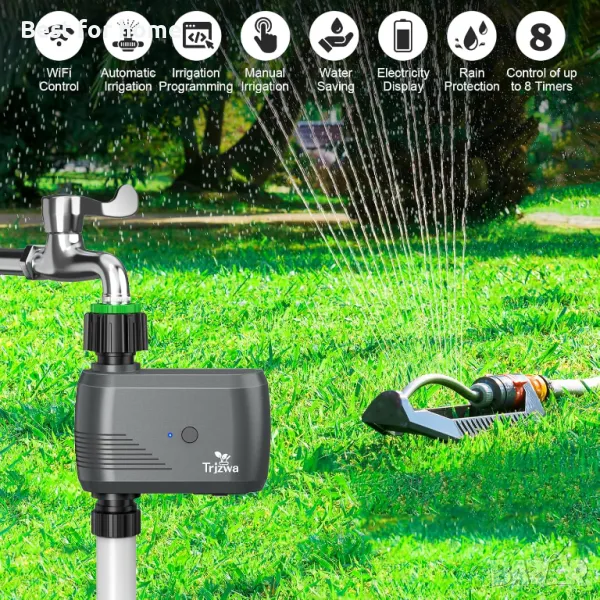 TRJZWA WiFi таймер за вода, най-новият интелигентен таймер за напояване от 2024 г. с WiFi дистанционно управление за таймер за напояване на градина/мора/басейн/