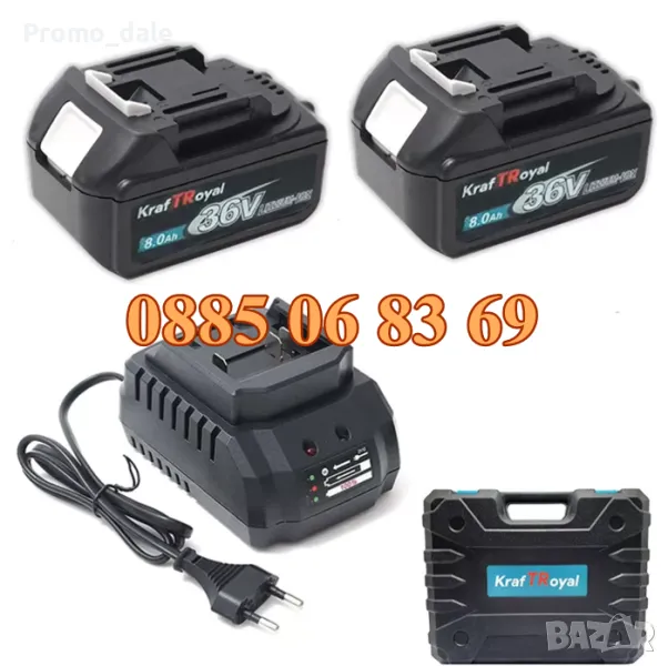 Импакт, Безчетков акумулаторен ударен гайковерт-винтоверт 36V 8Ah с 25 части