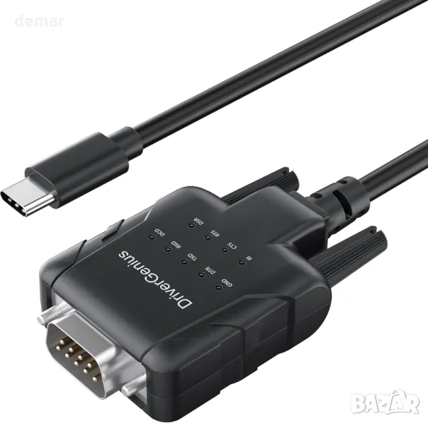 DriverGenius USB232A-E-C | USB-C към сериен/RS232 (DB9) адаптер,Windows 11,macOS 15 (пакет от 2 бр)