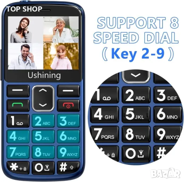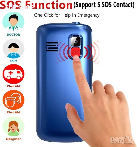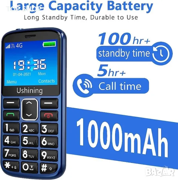 Мобилният телефон 4G Senior разполага с големи шрифтове, големи икони на менюто и подобрени високоговорители, което го прави идеален за възрастни хора, деца и хора с увредено зрение. Включва камера, аудио, видео, Bluetooth, FM радио, калкулатор, будилник и календар. Съвместим с европейски 2G/3G/4G оператори, този телефон без договор поддържа SIM карти от различни оператори като Vodafone, Three, O2,