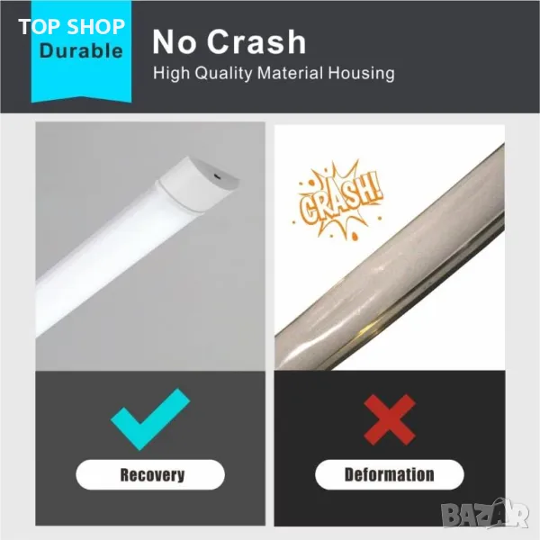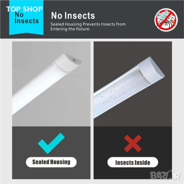 Тази LED лампа предлага три опции за цветова температура: 3000K топло бяло, 4000K неутрално бяло и 6500K студено бяло, в универсален, компактен дизайн. Осигурява значителни икономии на енергия, намалява разходите с 52% и осигурява яркост, превъзхождаща две 1,5 метра T8 флуоресцентни тръби. Проектиран със запечатан корпус IP42, той ефективно предотвратява проникването на насекоми. Отличава се със стартиране без трептене за по-малко от 1 секунда благодарение на вградения драйвер, елиминиращ необходимостта от баласт и стартер. Монтажът е лесен с включени всички необходими монтажни комплекти, позволяващи лесен монтаж на таван или стена с регулируеми, подвижни скоби.