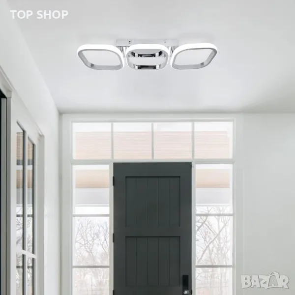 Модерното LED таванно осветление се отличава с три деликатни хромирани алуминиеви квадрата, предлагащи по-измерен вид в сравнение с други