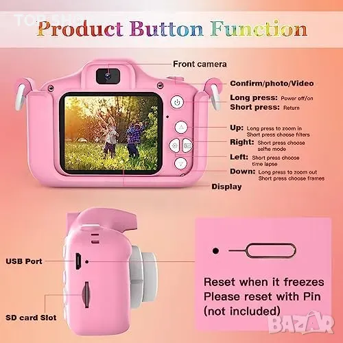 Нов Детски цифров фотоапарат за деца / 1080P HD Подарък 3-12год. → Обява 49509492