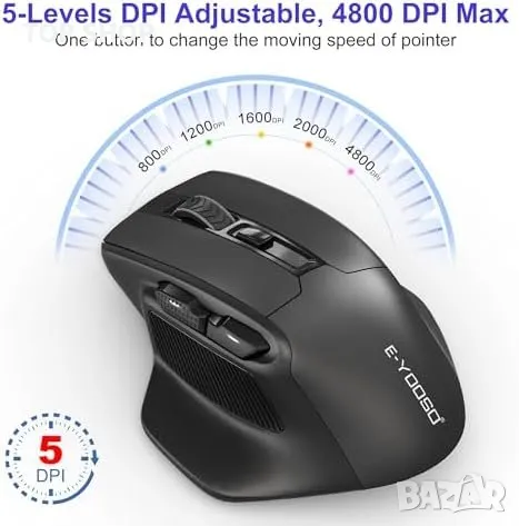 5-степенно регулируем DPI (4800 DPI максимум): Превключвайте лесно между 800/1200 (по подразбиране)/1600/2000/4800 DPI за висока точност и отзивчивост.