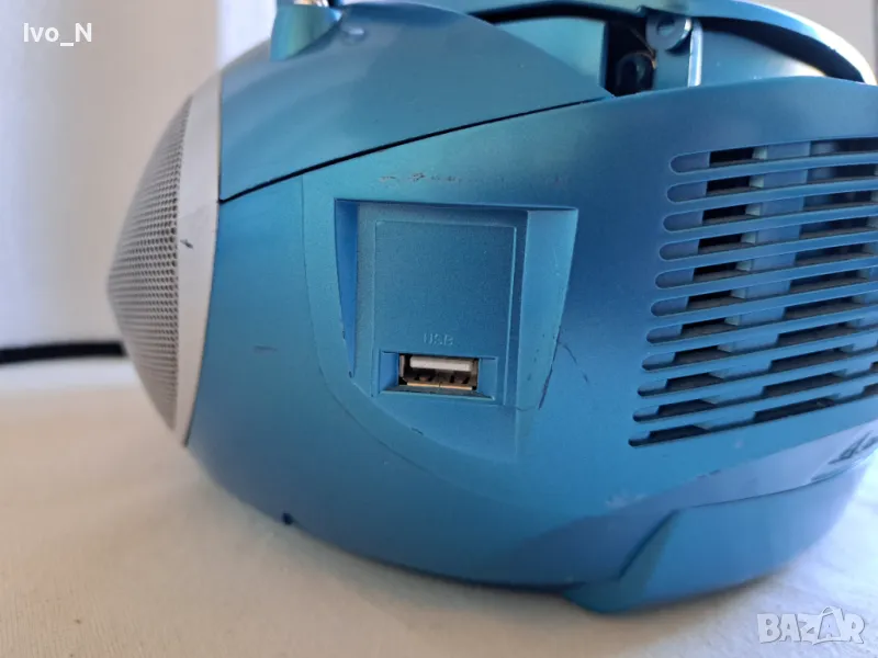 Устройството е в отлично техническо състояние. Всичко работи.FM стерео тунер с автоматична настройка и памет на 10 станции, CD плейър също за MP3 компактдискове,USB порт, ултрабас система.3,5 mm жак за слушалки.LCD дисплей. Захранване 230v или 6 R14 батерии. Включен захранващ кабел. Изпращам само с Еконт с преглед и тест.