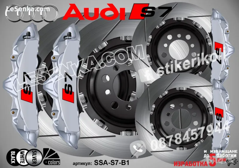 Надписите са изработени от качествено автомобилно фолио. Могат да се лакират. Цената е за комплект от 4 бр. от една и съща разцветка - бяло, черно или сребърно. Размерите на предните са 8 см., а на задните 5 см. Спирачните апарати са различни модели и големини, поради това моля съобразете дали тези размери са подходящи за вашите апарати - при възможност и с уговорка е възможно, размерът на надписите да се измени.