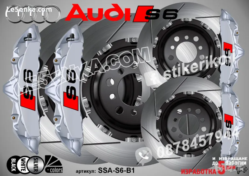 Надписите са изработени от качествено автомобилно фолио. Могат да се лакират. Цената е за комплект от 4 бр. от една и съща разцветка - бяло, черно или сребърно. Размерите на предните са 8 см., а на задните 5 см. Спирачните апарати са различни модели и големини, поради това моля съобразете дали тези размери са подходящи за вашите апарати - при възможност и с уговорка е възможно, размерът на надписите да се измени.