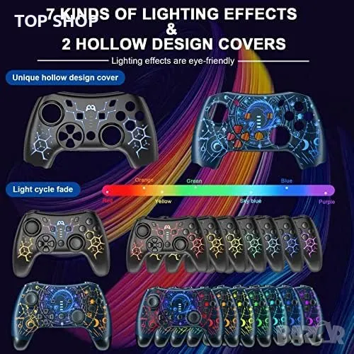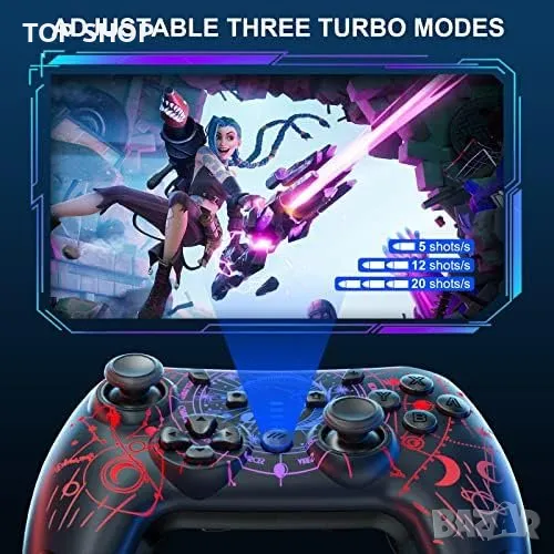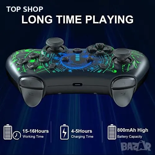 Нов Безжичен Про Контролер джойстик за PC, телефон iPhone, Android, Switch с LED и Турбо