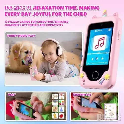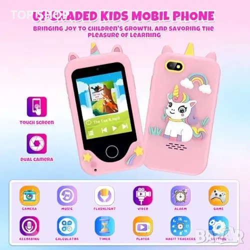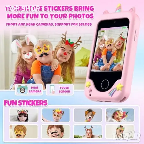 Телефон играчка за деца: 2.8" екран с двойна камера за снимки и видео на 1080P