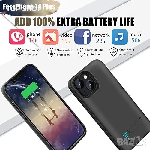 Нов заряден калъф за телефон iPhone 14 Plus Акумулаторна батерия 6000mAh → Обява 49509697