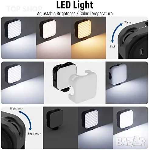 Нов стабилизатор за телефон Настолен статив LED светлина за видео влог