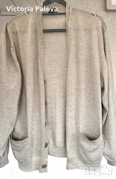Красив цвят, тънък, но плътен меринос, гладък като коприна, може да се носи на голо тяло, брандирани копчета, стегнат маншет, машинно пране. Рамо - 55см, ГО - 65см, дължина - 72см, ръкав - 62см.
