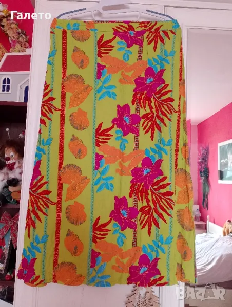 Пола с ластик на талията който е от двете страни на кръста подходяща за много комбинации от цветове. Подходяща за ежедневието и работа. Дължина 85 см. Талия 40 см едностранно разтягане до 47 см. Номер 46 размер М ,L Цена 5 лв.