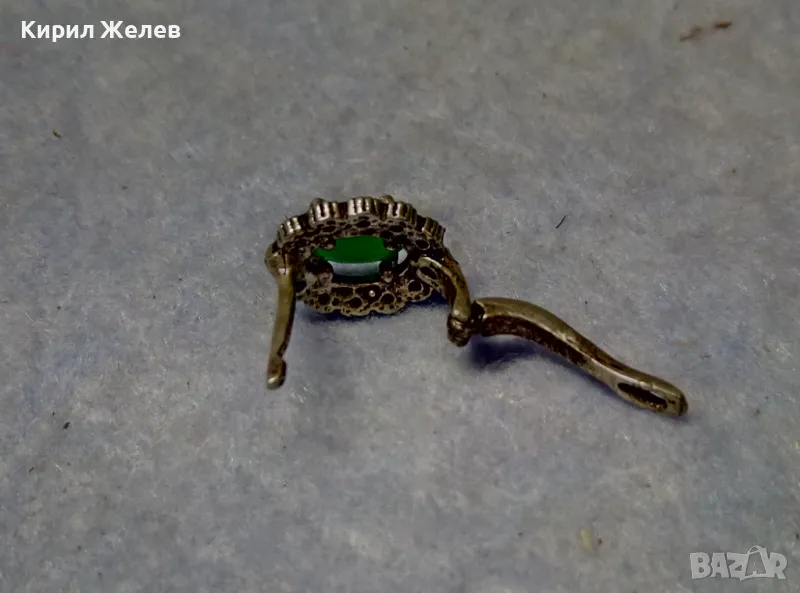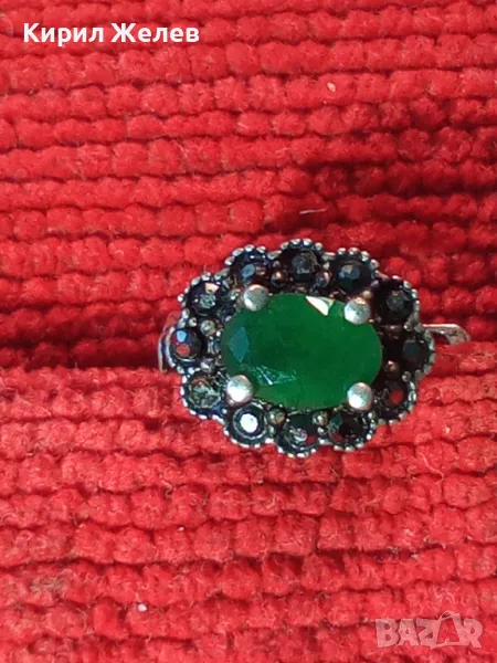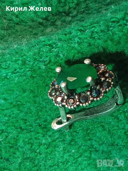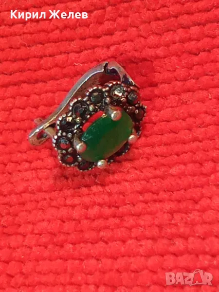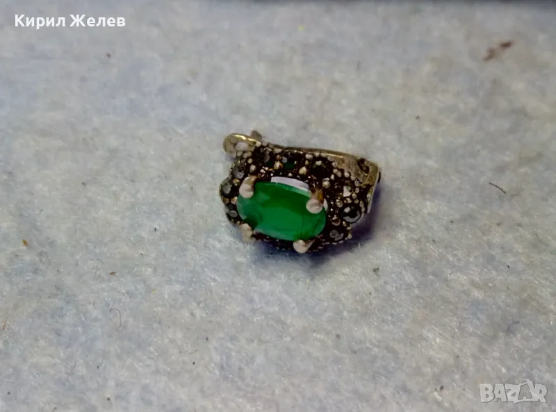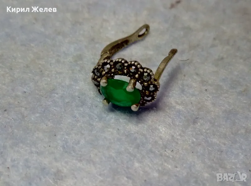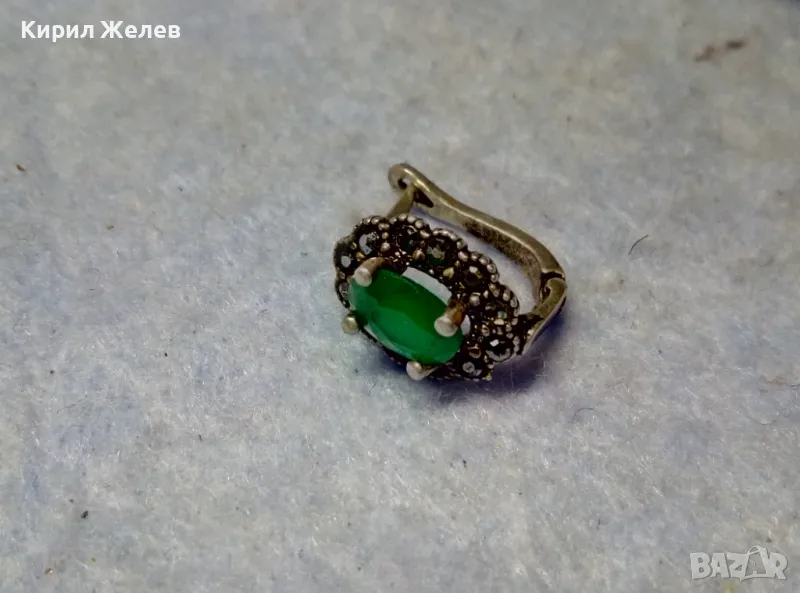 СТАРА СКЪПОЦЕННА СРЕБЪРНА ОБЕЦА СРЕБРО 925 АНГЛИЯ с ФАСЕТИРАН ПЕРИДОТ и МАРКАЗИТИ 48241