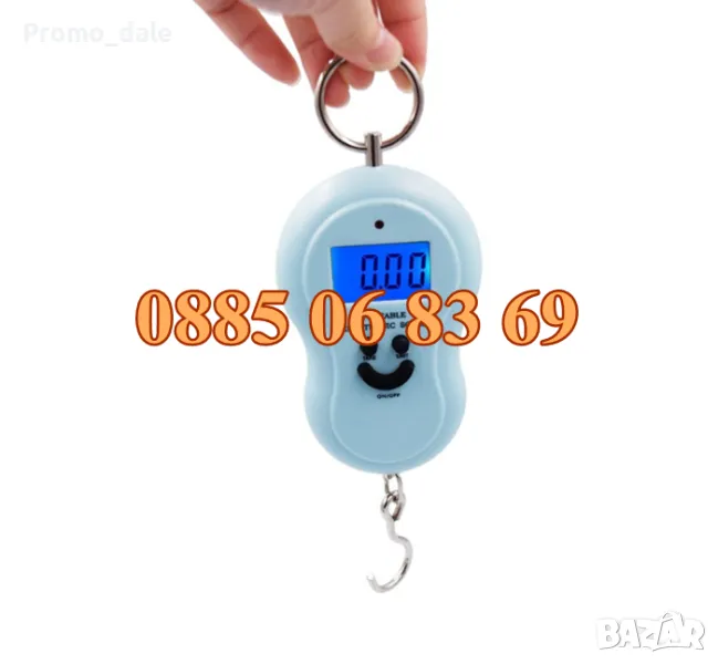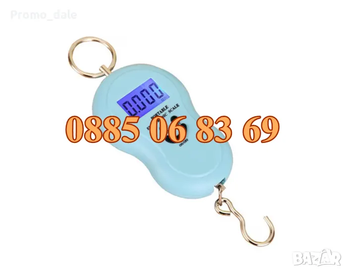 Електронен (дигитален) ръчен кантар до 50 килограма за измерване на багаж, риба, покупки, дрехи, риболовен