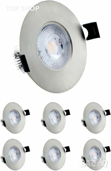 sanlumia 6 бр. LED лампа за вграждане IP44 7W 600lm, 6400K студено бяло, покритие от сатениран никел