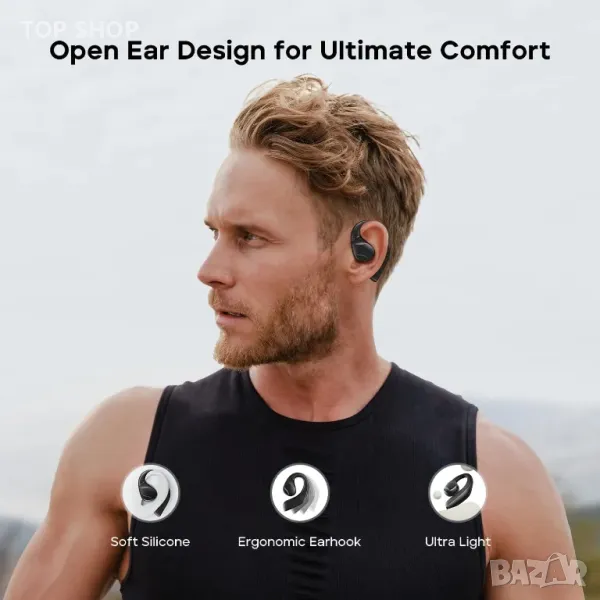 Безжичните Bluetooth слушалки OpenGo се отличават с отворен дизайн с ергономични силиконови куки за уши за комфорт и сигурност. Те предлагат до 13 часа игра с едно зареждане и над 100 часа с кутията за зареждане с LED дисплей. Отвореният дизайн осигурява ситуационна осведоменост, което ги прави идеални за дейности на открито, докато хидроизолацията IPX5 предпазва от пот и дъжд. Снабдени с 16,2 мм драйвер и технология против изтичане на лъчи, те осигуряват детайлно, завладяващо аудио с Bluetooth 5.3 свързаност за стабилни разговори до 30 метра. Интелигентните сензорни контроли и поддръжката на приложението TRIBIT позволяват персонализирани настройки на EQ и интуитивна работа.