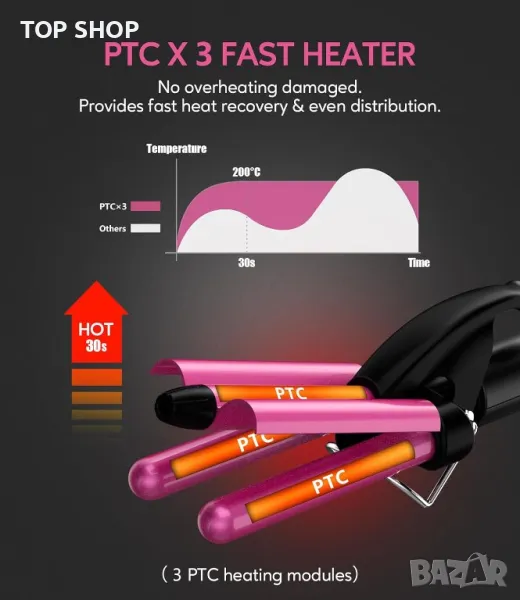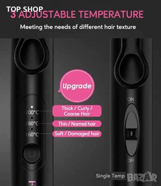 Моля използвайте системата за съобщения! Просто изпратете запитване. По телефона се губи време за уточняването на търсения от Вас продукт.Уредът за коса Farery 3 barrel предлага гъвкавост с 3 регулируеми температурни настройки (160-180-200°C), обслужващи различни типове коса, функция, която не се среща често в мини машите за коса. Неговите 12,7 мм тънки дула са перфектни за създаване на обемни визии, от къса коса до естествени русалки/плажни вълни в дълга коса. Подсилен с кератин, арганово масло и турмалин, цевта освобождава отрицателни йони за блестящи, полирани вълни и разпределя топлината равномерно, за да минимизира увреждането на косата. Тази преносима, удобна за пътуване машина за пресоване поддържа двойно напрежение (100-240 V) и е компактна с дължина 28 cm и тегло 350 g. Функциите за безопасност включват кабел с дължина 1,85 м, 60-минутен автоматичен режим на заспиване, 100% дизайн против изгаряне и предпазна стойка за предотвратяване на повърхностни изгаряния. Комплектът включва и пътна чанта за съхранение, което прави кримпера FARERY удобен избор за стилни пътешественици.