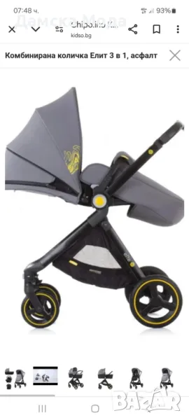 Комплектът включва: рама и седалка; кош за новородено бебе с матраче и покривало; детско столче за автомобил (група 0+); адаптори за детско столче за автомобил; удобна раничка за аксесоари с термо джоб; покривало за крачетата за седалката.