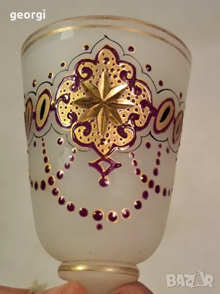 Стара чаша бохемско опалово стъкло с позлата → Обява 49511910