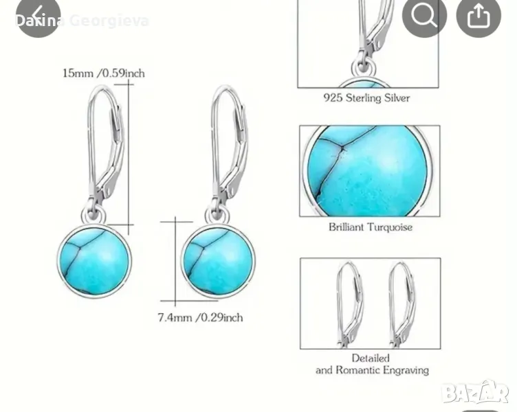 Сребърни обеци тюркоаз, снимка 1 - Обеци - 49512071 Сребърни обеци тюркоаз, снимка 2 - Обеци - 49512071 Сребърни обеци тюркоаз, снимка 3 - Обеци - 49512071 1/3