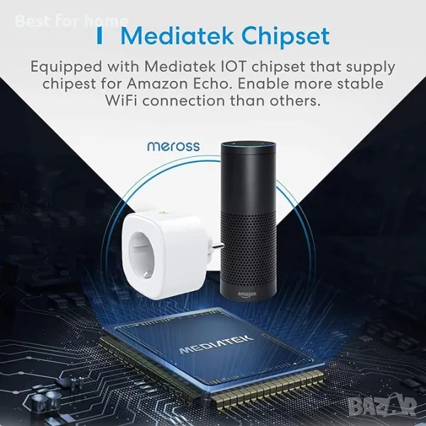 Гласов контрол: можете да управлявате гласово вашите устройства чрез Apple Watch или iPhone. Умният контакт е съвместим с Apple HomeKit, Siri, Alexa и Google Assistant