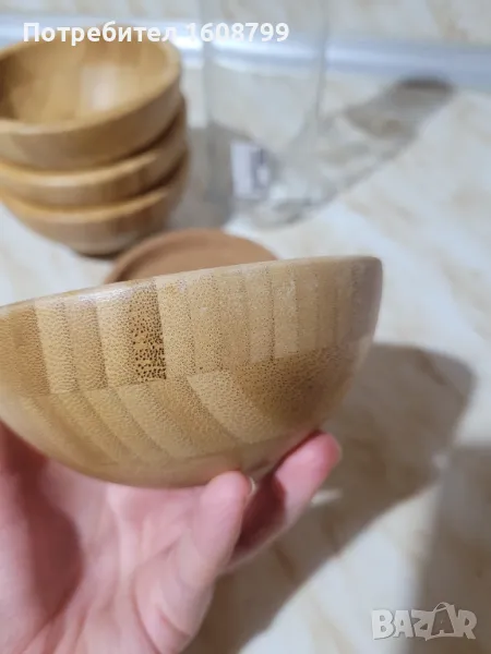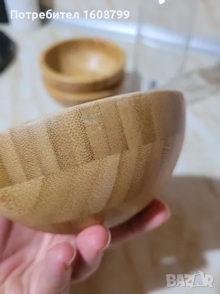 *бамбукови купи 12 см - 4 бр (2 от тях са използвани и имат леко избледняване по ръбовете от миенето, ползвани са 2 или 3 пъти, другите 2 са чисто нови)
