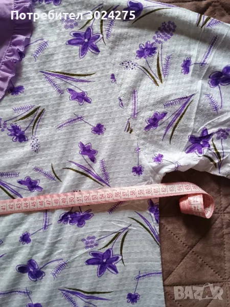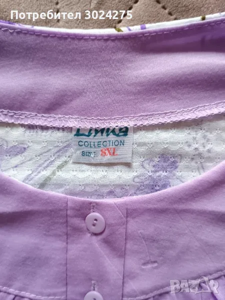 Продавам нова дамска пижама, размер: 8XL, ширина на горното: 61см., дължина от рамото до долу: 78см. Долнище: 103см. от ластик до долу. Състав: 65% памук и 35% полиестер. Изпращам по Спиди или Еконт с преглед и тест.