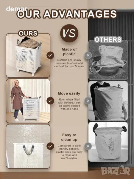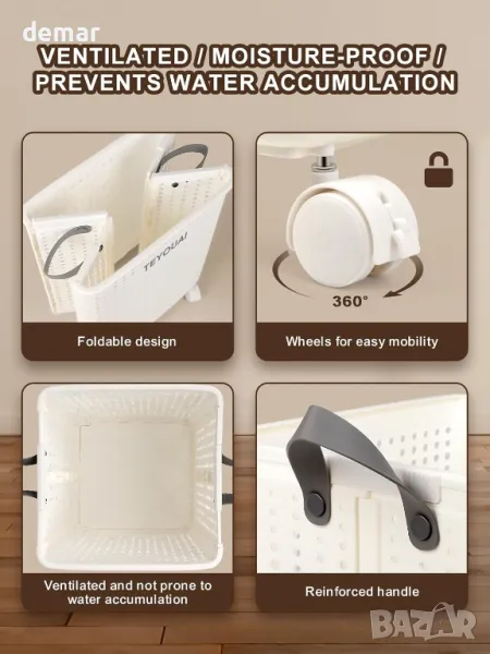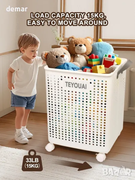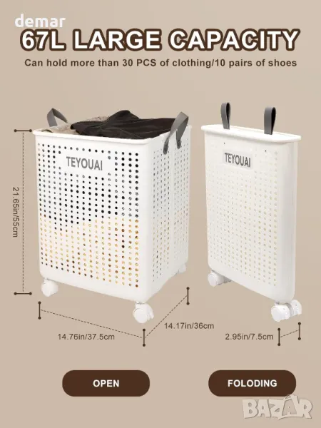 TEYOUAI 67 л Пластмасов сгъваем кош за пране, с дръжки и колела