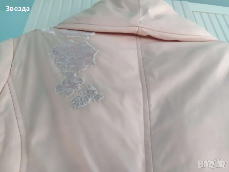 Предлагам ви елегантно италианско яке в нежен розов цвят, украсено с красиви орнаменти. Закопчаването с "тик-так" копчета придава допълнителен чар на този уникален модел. Това италианско яке е истинско бижу! Нежният розов цвят и изящните орнаменти го правят уникално. Копчетата "тик-так" добавят закачлив акцент. Якето е използвано, но е в отлично състояние и ще добави стил и изисканост към вашия гардероб.