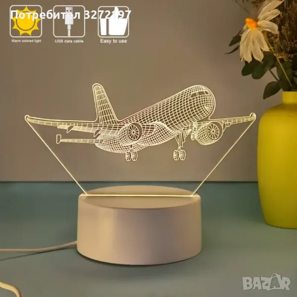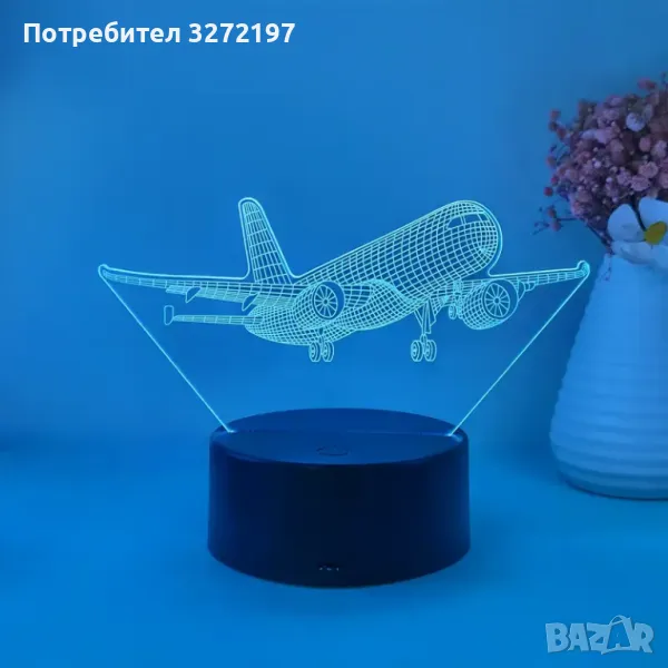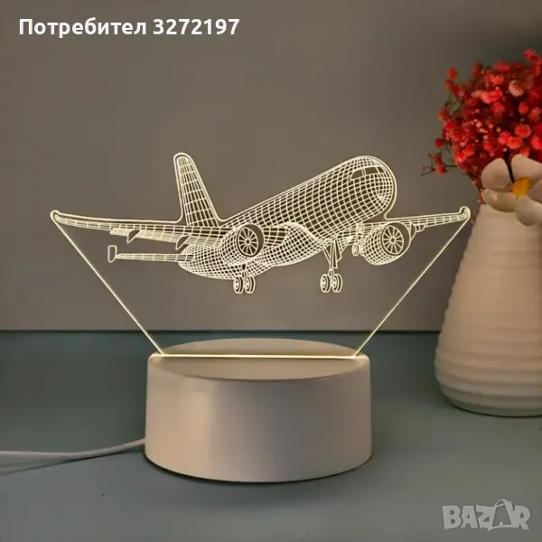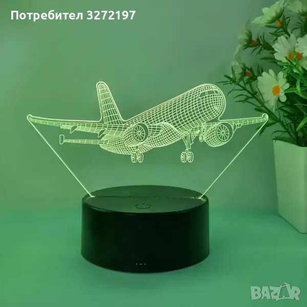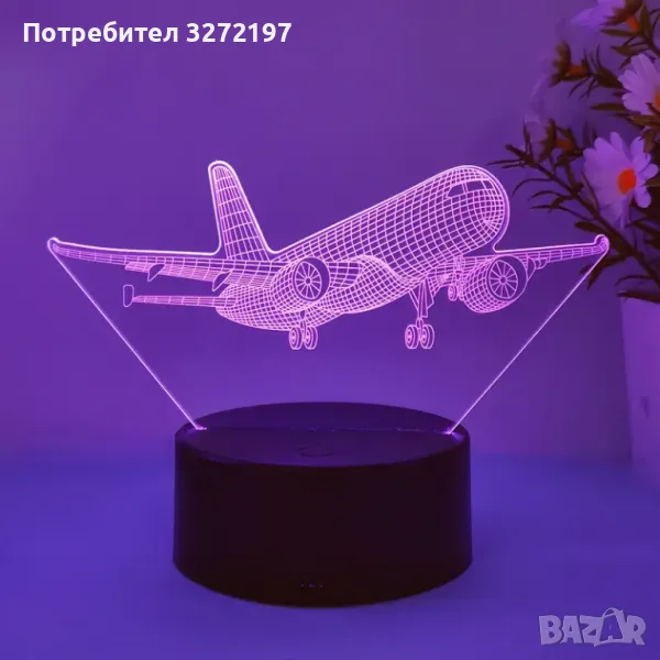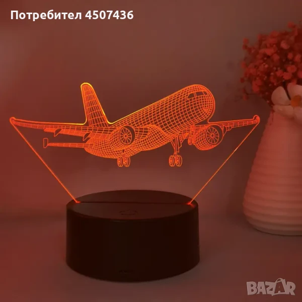 Нощна Лампа с 3D Пътнически Самолет и LED Осветление