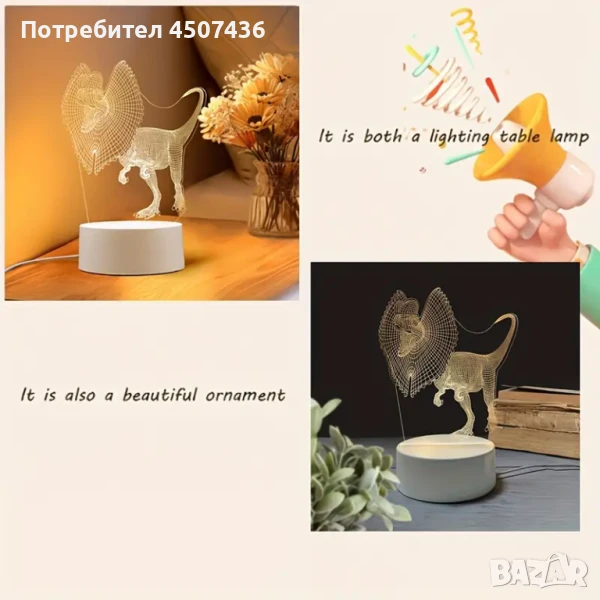 Холограмна 3D LED лампа Дилофозавър → Обява 49514274