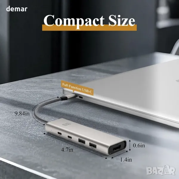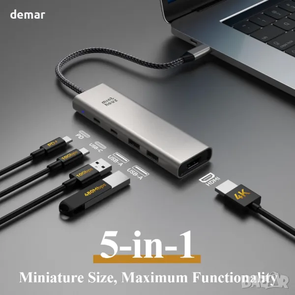 Този 5-в-1 USB хъб разширява свързаността с 4K@60Hz HDMI порт за визуализации с ултрависока разделителна способност и намалено напрежение на очите, 140W PD 3.1 порт за зареждане за бързо и ефективно зареждане на лаптоп и множество опции за пренос на данни, включително 10Gbps USB-C 3.2 & USB-A 3.2 и 480Mbps USB-A 2.0. Той поддържа гореща смяна, позволявайки безпроблемно свързване и изключване на периферни устройства без рестартиране на устройството. С функцията plug-and-play той работи в различни операционни системи, без да изисква драйвери, което го прави идеален за настройки за дома, офиса или при пътуване.