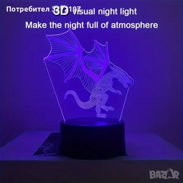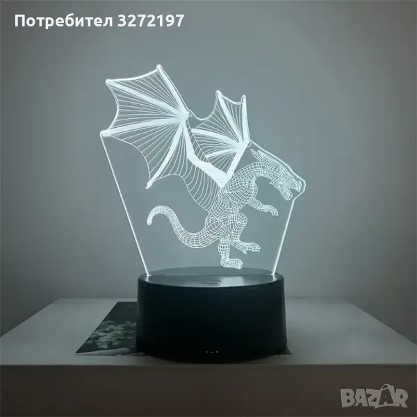 Нощна Лампа с 3D Летящ Дракон и LED Осветление