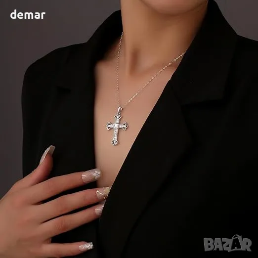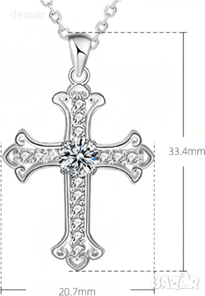 Красиво проектирано колие с висулка с кръст, включващо ослепителен 0,5-каратов VVS1 D цвят моасанитов диамант, поставен в хипоалергенно сребро проба 925, което не съдържа олово и никел. Висулката позволява свободно движение и може да бъде премахната от включената 19,69-инчова верига, предлагайки гъвкавост за смяна на вериги по желание. С тегло приблизително 4,2 грама, той осигурява дълготраен блясък и гарантирано преминава тест за диаманти. Moissanite предлага екологична, рентабилна алтернатива на диамантите, блестяща още по-ярко на светлина. Опакован в подаръчна кутия с полираща кърпа, той е смислен и елегантен подарък.