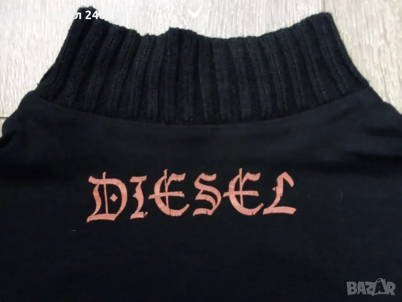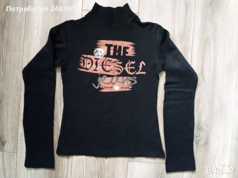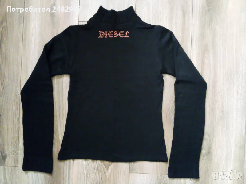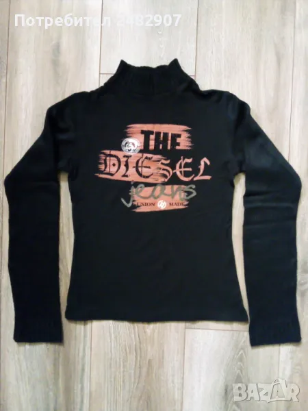 Черна дамска блуза от трико с машинно плетени деколте и ръкави. Ширина в раменете - 33 см, ширина под мишниците - 37 см, ширина в долната част - 38 см, дължина от рамото до долу - 50 см, дължина на ръкава от рамото - 57 см, ширина на ръкава в долната част - 10,5 см. Много запазена, почти не е използвана, без забележки, полуполо деколте.