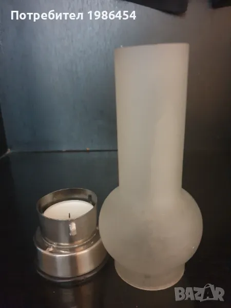 Декоративен свещник с матово стъкло. Използват се чаени свещи.Височина 20 см.Нов .