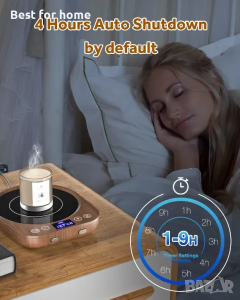 Нагревател за чаши с автоматично изключване и таймер: Този нагреваем панел за нагряване на кафе е направен от висококачествен микрокристален панел, е домашни джаджи. Докоснете бутона "+ -", за да зададете времето за автоматично изключване от 1 до 9 часа. Ако не зададете автоматично изключване, нагревателят за чаши ще се изключи автоматично след 4 часа по подразбиране. Взривозащитен и устойчив на висока температура панел за предотвратяване на опасности за безопасността, причинени от забравяне на захранването или изтичане на вода.