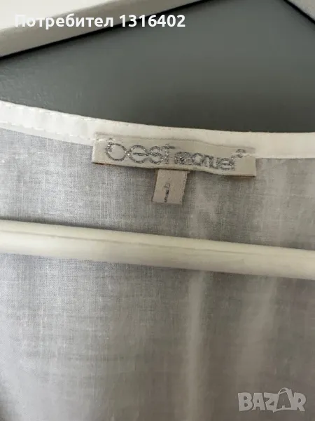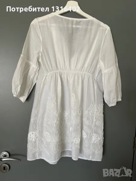 Памучна лятна бяла рокля - туника “ Best Manuel”, размер S, ширина под мишници 47см, дължина 80см, ръкав 45см.
