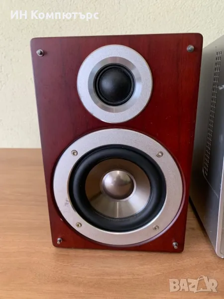Системата не включва. Тонколоните са пробвани и свирят без забележки. Не са правени опити за ремонт от нас. Добър външен вид. Няма кабели към системата.