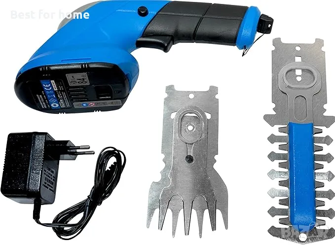 Приставка за ножици за трева, приставка за жив плет и храсти са включени.