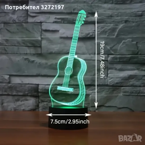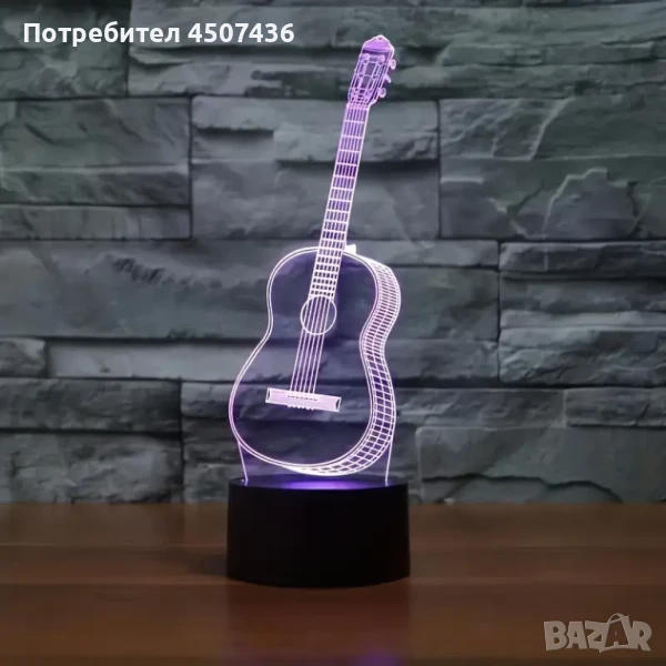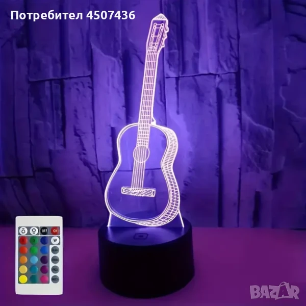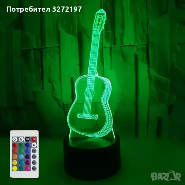 Холограмна 3D LED лампа Китара-дистанционно управление 16 цвята+други режими на управление