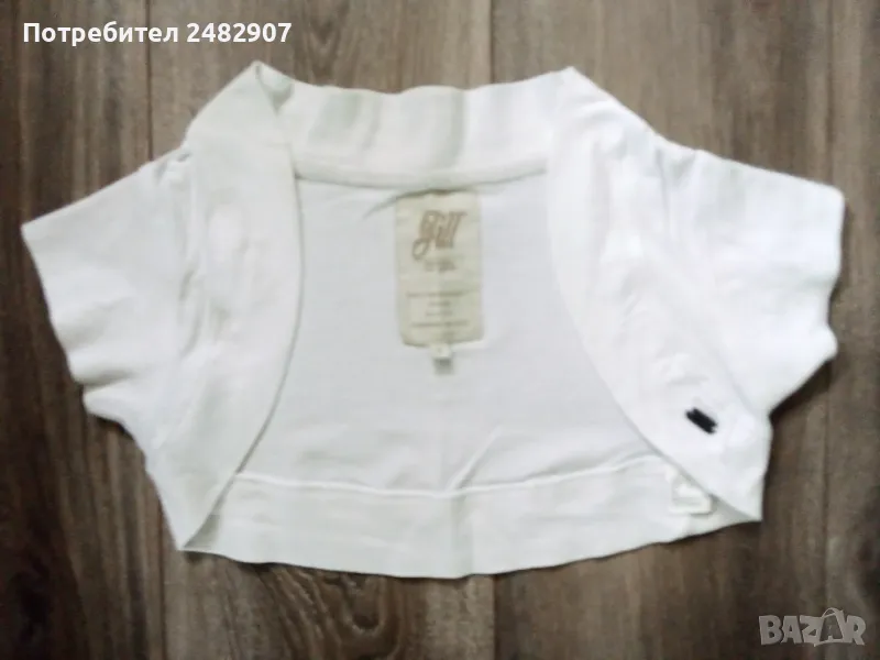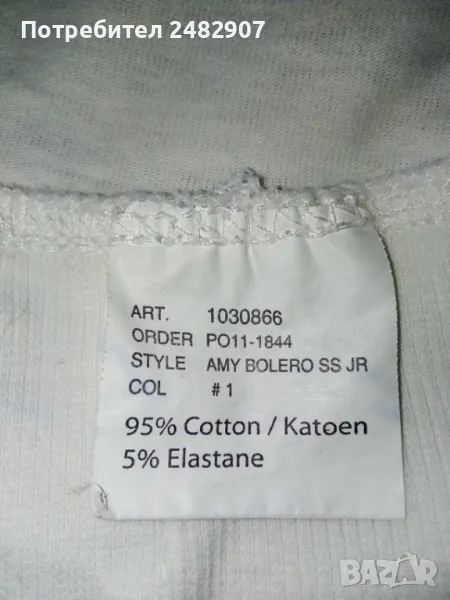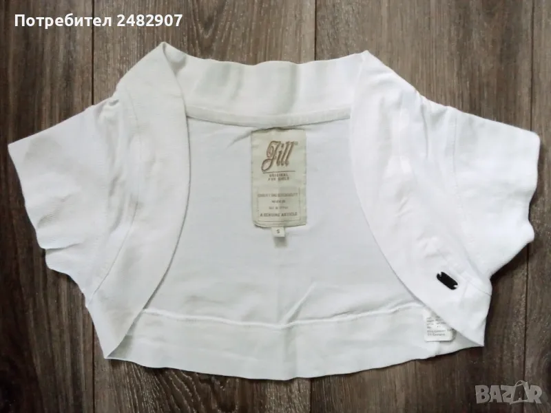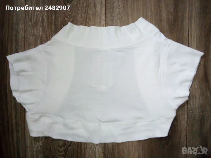 Бели дамски ръкави, размер S. Съдържат 95 % памук и 5 % еластан. Ширина в раменете - 32 см, ширина под мишниците - 35 см, дължина от рамото до долу - 25 см, дължина на ръкава от рамото - 8 см, ширина на ръкава в долната част - 15 см. Много запазени, почти не са използвани.
