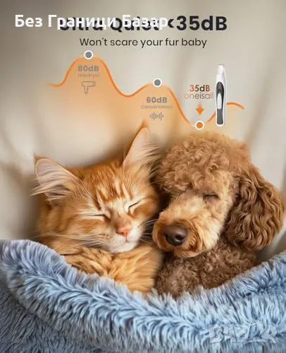 Тиха работа – само 35dB – Минимизира стреса и прави подстригването комфортно за чувствителни животни.