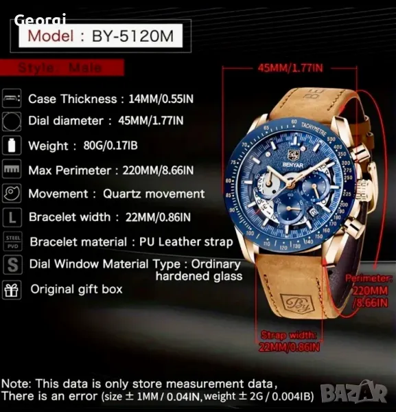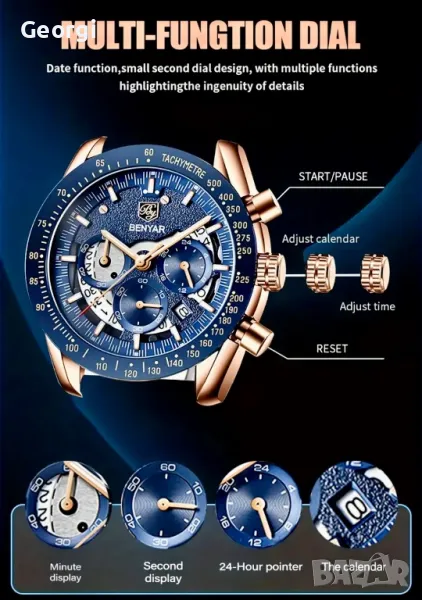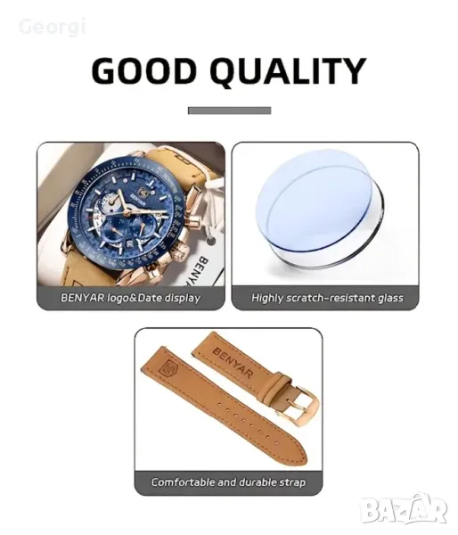 Класически мъжки, спортно/ежедневен кварцов часовник By “Benyar* хронограф в два модерни варианта!!