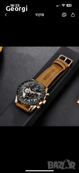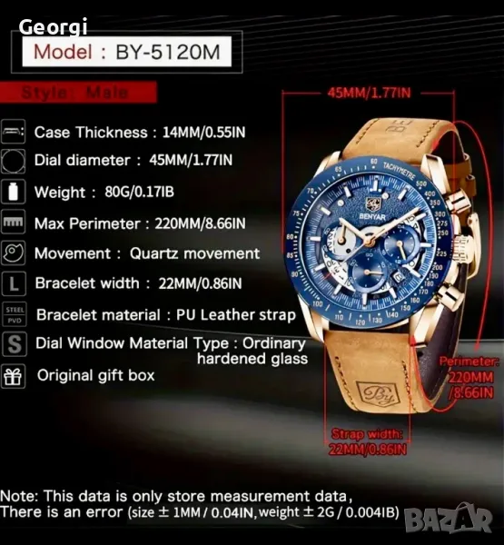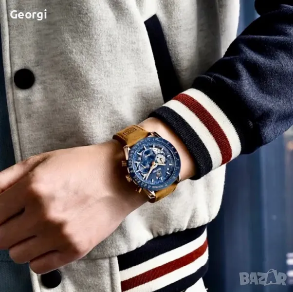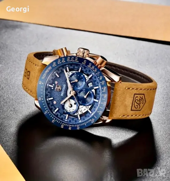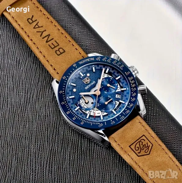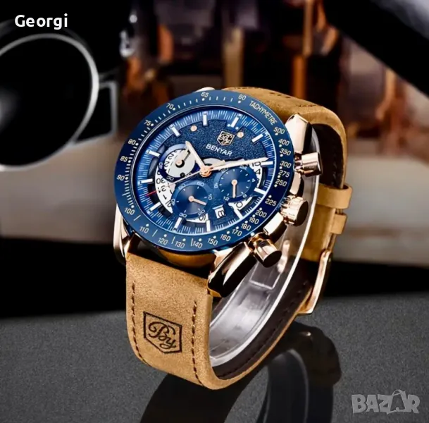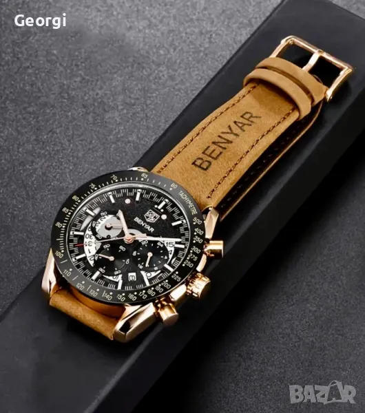 Спортно/Елегантен Мъжки часовник BY*BENYAR* Спортен хронограф с кожена каишка!
