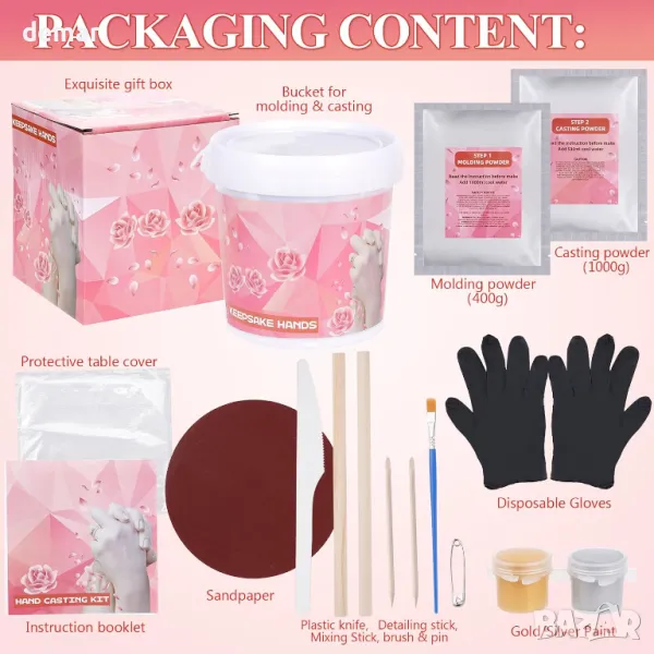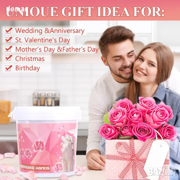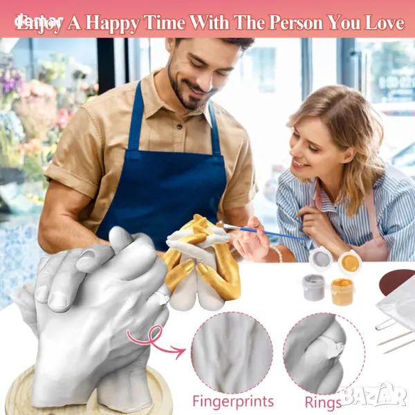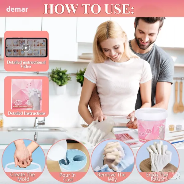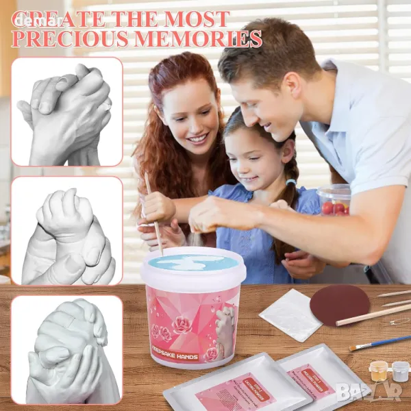 Създайте трайни спомени с този лесен за използване комплект за ръчно формоване, идеален за двойки и семейства. Изработен от нетоксични, безопасни за кожата материали, той улавя всеки фин детайл, запазвайки специалните моменти завинаги. Просто смесете алгината, създайте матрицата, изсипете гипса и го оставете да изсъхне, преди да разкриете вашата уникална скулптура. Забавна дейност за годишнини, сватби, рождени дни и други, това е идеален подарък за любими хора, красиво опакован и готов за всеки повод.