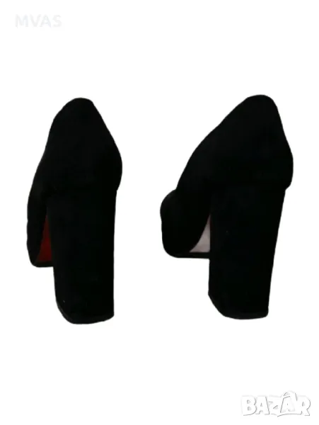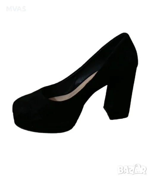 Дамски обувки еко велур на дебел ток и платформа под пръстите, която прави по-плана извивката, отзад са тъмно червени.