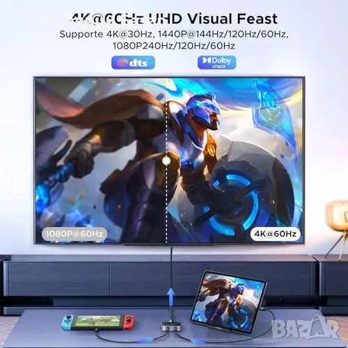 Поддръжка на 4K@60Hz – кристално ясна картина, HDR10+, Dolby Atmos за киноизживяване.