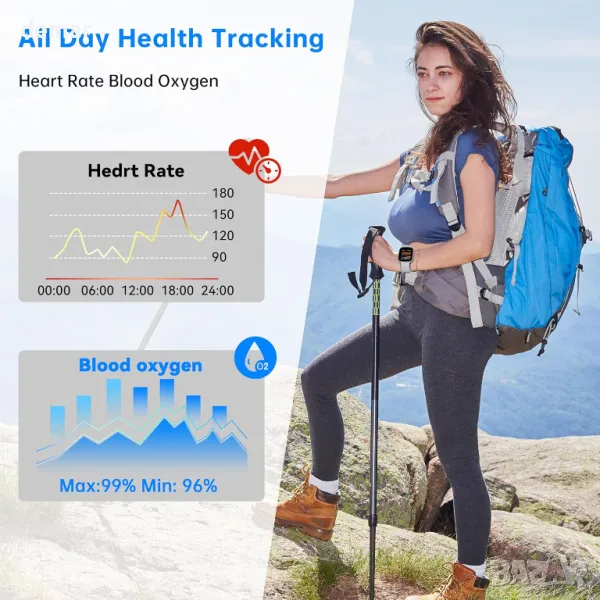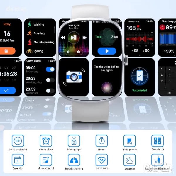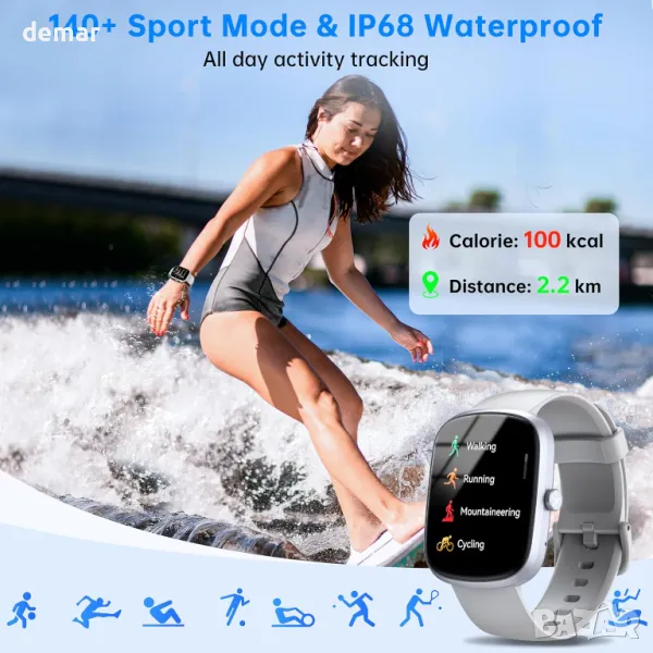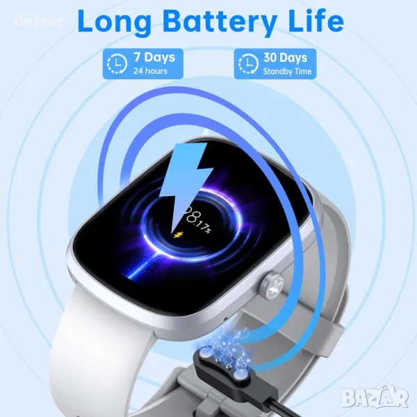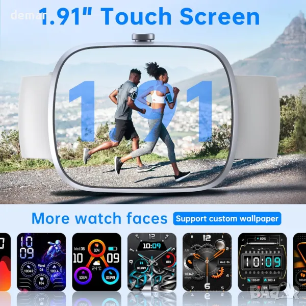 Смарт часовникът разполага с 1,91-инчов сензорен цветен екран с над 200 персонализирани циферблата и опция за задаване на лични тапети. Поддържа Bluetooth обаждания, известия за съобщения от популярни приложения и контрол на музиката. С над 140 спортни режима и проследяване на активността в реално време, той помага за оптимизиране на тренировките, докато водоустойчивостта му IP68 гарантира издръжливост. Часовникът осигурява 24/7 мониторинг на здравето, включително сърдечен ритъм, SpO2, анализ на съня и проследяване на женския цикъл. Допълнителните функции включват крачкомер, обучение за дишане, актуализации за времето, контрол на камерата и др. Той предлага до 7 дни живот на батерията при 2-часово зареждане и е съвместим с устройства с Android и iOS.